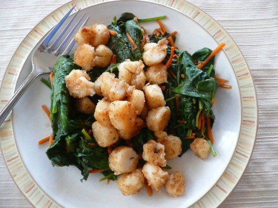 Aangebraden sint-jakobsschelpen en spinaziesalade