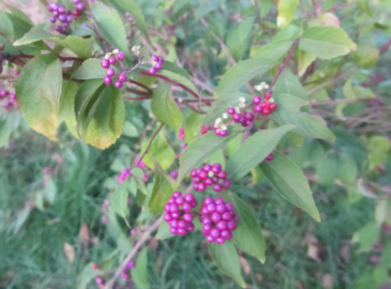 Beautyberries verdienen hun naam ook met hun iriserend-paarse fruit dat vroeg in de herfst aankomt. Mooie paarse bessen. Dit is een zachte zoete gelei op zijn eigen. Maar met de toevoeging van shiso die zowel meer kleur als een zeer lichte kruidensmaak geeft. Oorspronkelijke wortel van Amerikaanse wortel en thee bladeren in zweetbaden voor reuma, koorts en malaria.Root thee gebruikt voor dysenterie, buikpijn.Root en bessen thee gebruikt voor koliek.Pretty om te worden geserveerd bij een Bridal Shower Brunch.