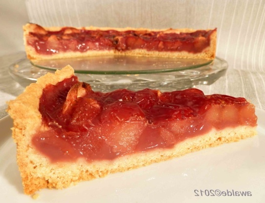 Als ik iets gebakken wil dat niet glutenvrij is, neem ik mijn DMIL in dienst die de meest schattige cakes en taarten maakt. Het verhaal van deze taart is heel grappig: mijn DFIL hield ervan wijnen te verzamelen, hoewel hij geen idee had over welke wijn bewaard kan worden en welke niet. Hij was gewoon dol op het maken van vakanties aan de Moezel en het kopen van interessante ogende Mosel-wijnen, over het algemeen witte wijnen. Hij was echter vooral dol op het verzamelen van de flessen, maar niet aan het drinken van de wijn, dus verliet hij een hele kelder met wijnflessen toen hij stierf . Ongeveer een jaar lang sprak DMIL erover om op de een of andere manier die wijnen kwijt te raken, Duits "Weincreme" te maken of weg te geven als cadeau, omdat niemand van ons dat leuk vond. Toen benadrukte hij dat we het niet konden weggeven als een geschenk. aanwezig omdat we niet wisten of de wijn eigenlijk nog drinkbaar was (als het ooit was geweest). Ten slotte besloot DMIL om deze appelwijntaart te maken voor een zomerbbq die we hadden. De middag dat ze kwam met de taart was ze helemaal rood in het gezicht, en het bord blootleggen, giechelde ze en zei th kennelijk had ze net de enige fles * rode * wijn gevangen en toen ze haar fout ontdekte was het te laat. Dus in plaats van een "witte" taart hadden we deze grappige witte en rode - dat was een grote hit! Elke vrouw op het feest vroeg om het recept en ze waren het er allemaal over eens dat het veel interessanter lijkt met rode wijn dan met wit. Prep tijd is een gok omdat ik zelf niet de taart heb gemaakt; het omvat niet de rusttijd 's nachts