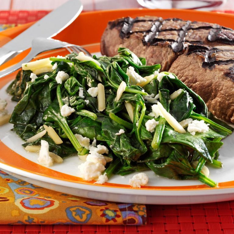 Voeg spinazie en amandelen toe; bak 2 minuten langer of net totdat spinazie verwelkt is.