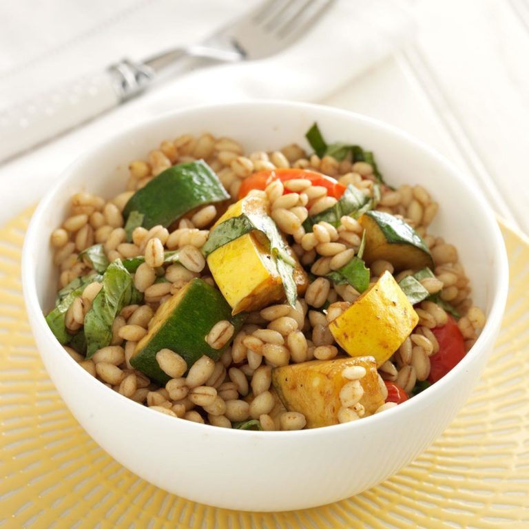 Voeg een onverwachte smaak toe aan gegrilde groenten met een glazuur gemaakt met balsamicoazijn, verse kruiden en wat honing en bruine suiker. De fantastische groenten worden gecombineerd met gerst om een gezonde en uitscheidbare kant te maken. Carly Curtin, Ellicott City, Maryland