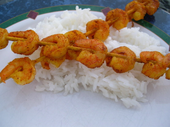 Leg vier garnalen op elke spies.