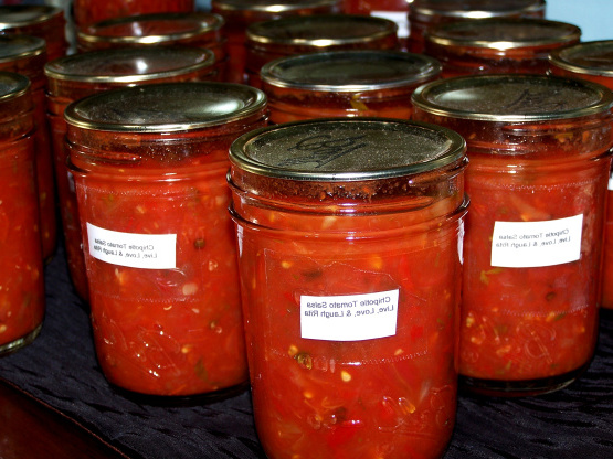 Geniet het hele jaar van je eigengemaakte tomaten door deze met smokey, knoflook gevulde salsa te maken. Gebruik de keukenmachine om de groenten te versnipperen om de haktijd te verkorten. Als je de tijd hebt om je knoflook te roosteren, voeg je het toe aan de salsa om het plezier te verdubbelen! ; )