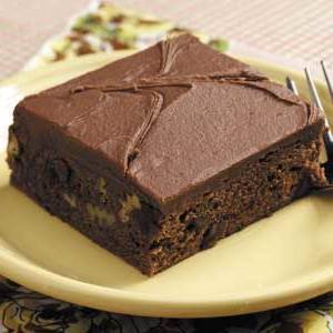 Deze vochtige, cakeachtige brownies zijn zo chocolaty-goed dat ze bij elke borrel snel gaan. De zure room als glazuur geeft deze lekkere vierkanten een klein vleugje waardoor ze er speciaal uitzien.-Conni Poto, North Canton, Ohio