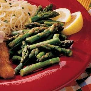 Clarice Scheeringa uit Ripon, Californië deelt deze verklede asperges. "Ik woon in het hart van het aspergeland, dus ik ben altijd op zoek naar nieuwe manieren om het te serveren," legt ze uit. "Citroen en een vleugje dragon maak er een snelle elegante bijgerecht van. "