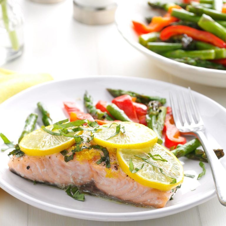 In ons huis kiezen we voor gezond voedsel, en deze citroenachtige zalm met basilicum is een knock-out in de goed-voor-je-categorie. We hebben het met asperges of courgette. - Shanna Belz, Prineville, Oregon