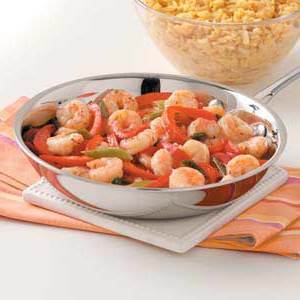 Garnalen, peper en een smakelijke citroensaus verkleden een verpakte broccoli rijstmix in dit snelle hoofdgerecht. "Ik vond het recept jaren geleden en heb het vele malen geserveerd, altijd met succes," merkt Lynn Corsaro van Florence, Colorado op. "Het is een centimeter te verdubbelen voor het bedrijf, en gasten altijd enthousiast over. "