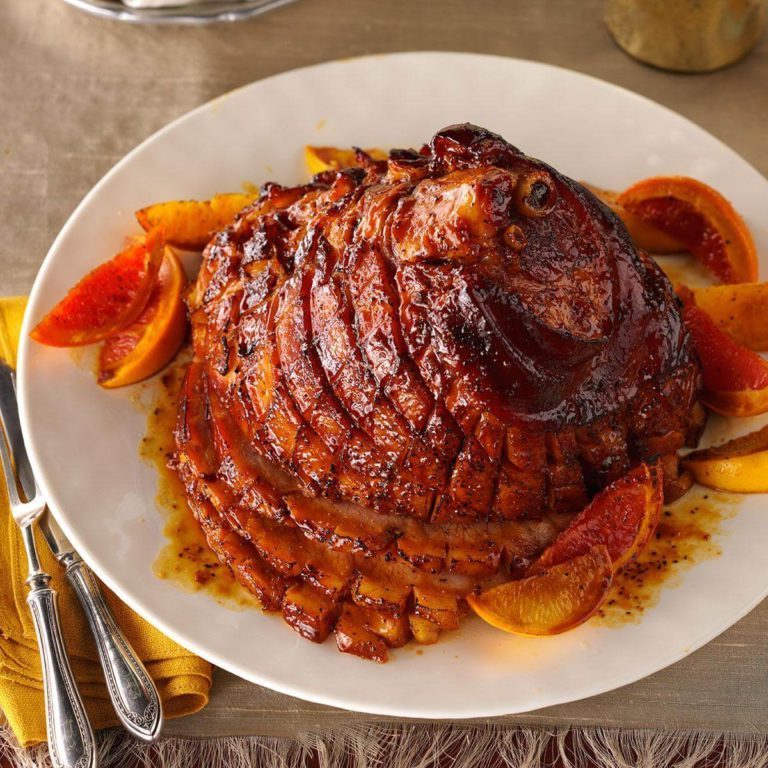 Citrus-melasse reductie geglazuurde ham