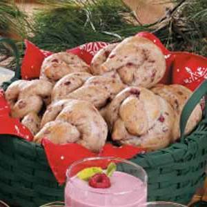 Leg in een keukenmachine of blender de gedroogde cranberries, appelmoes en 1 eetlepel suiker; bedek en verwerk tot het fijn is gehakt. Zet opzij. Los in een kom gist op in warme melk. Voeg de resterende suiker toe; laat 5 minuten staan. Voeg het cranberry-mengsel, olie, zout en voldoende meel toe om een zacht deeg te vormen. Draai het op een licht met bloem bestoven oppervlak; kneed tot een gladde en elastische, ongeveer 6-8 minuten. Plaats in een kom bekleed met koken spray, een keer draaien om de top te bedekken.Cover en laat rijzen een warme plaats tot verdubbeld, ongeveer 1,5 uur.