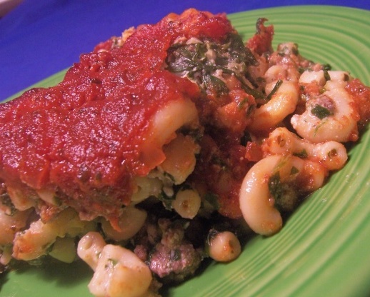 bedek de bodem van een 13 x 9 ovenschaal met spaghettisaus.