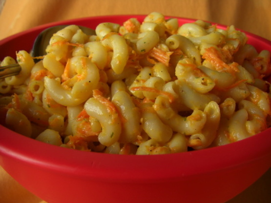 Onmiddellijk, terwijl de noedels nog heet zijn, meng je de mayonaise en de saladedressing. Voeg daarna afgekoelde wortels toe.