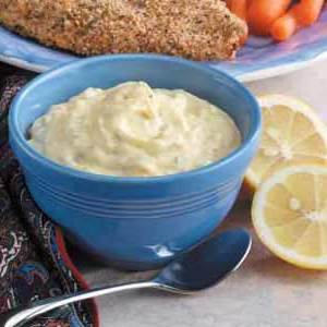 Vetvrije mayonaise, alleen gemengd met augurk, leek zo smakeloos, dus ik begon te experimenteren en kwam met mijn eigen recept voor tartaarsaus. Het voegt veel smaak toe aan vis, maar een paar calorieën. - Kristen Flaherty uit South Portland, Maine