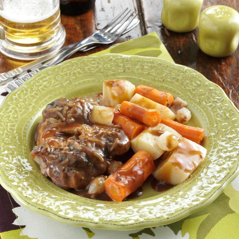 Wil je een stoofvlees met een grote, ouderwetse smaak, dat geen acht serveert? Probeer dan deze die ik graag voor mijn echtgenoot, de kunst en mezelf maak. - Marian Platt, Sequim, Washington
