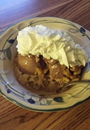 25 minZoete sauzensuiker, maïzena, nootmuskaat, kaneel, water, sinaasappelsap, perziken,verse perzik ijscoupe saus -