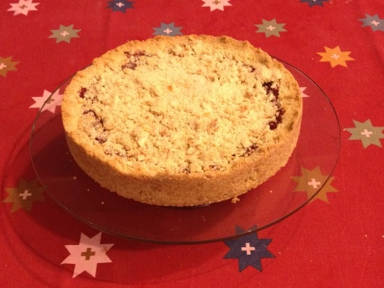 Frambozenjam scherp met amandelkruimeltaart