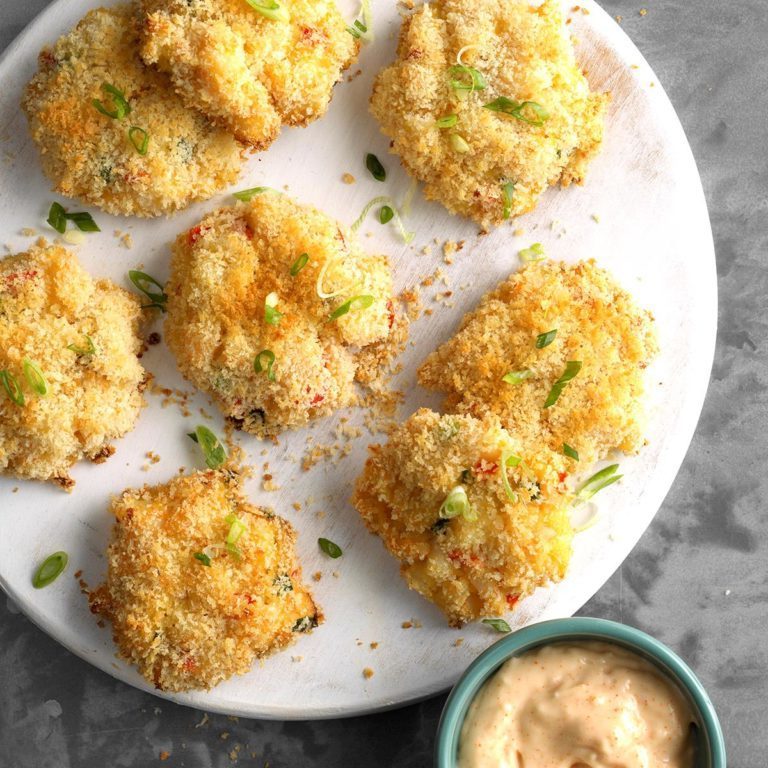 Voor garnalenkoekjes, combineer de volgende acht ingrediënten; voeg een kop toe met een inhoud van 130 ml die broodkruimels bevat. Voeg garnalen toe. Vorm met 60 liter in vijftien centimeter dikke pasteitjes. Schik in een enkele laag, dek af en laat afkoelen 2 uur.