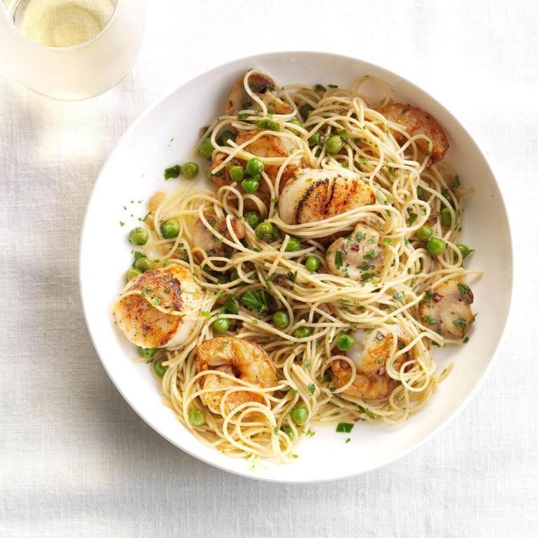 Gebakken coquilles en eenvoudig over agel-haarpasta