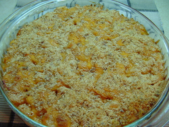 Bedek met het resterende macaroni-mengsel en bestrooi met paneermeel.