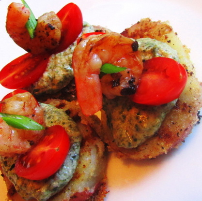 Gegrilde aardappelen en garnalen met spinazie-mousse rsc