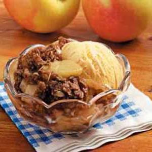 40 minScherpe toppingtaart appels, haver, suiker, meel, kaneel, nootmuskaat, kruidnagel, boter, Vanille-ijs,gegrilde appels