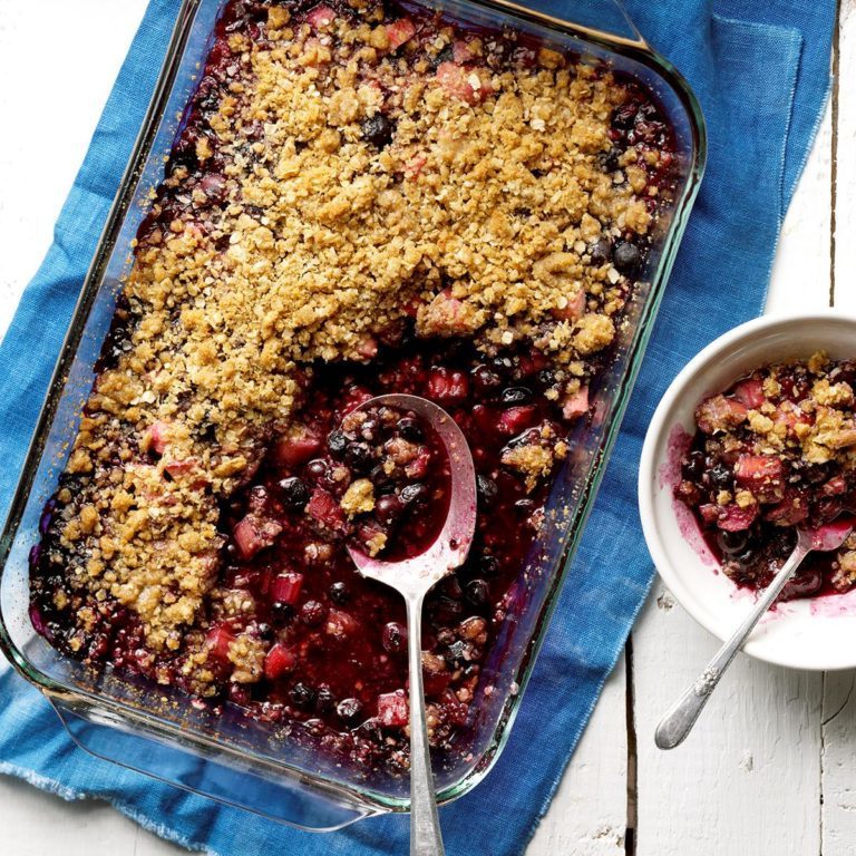 Gegrilde bosbessen-rabarber crumble
