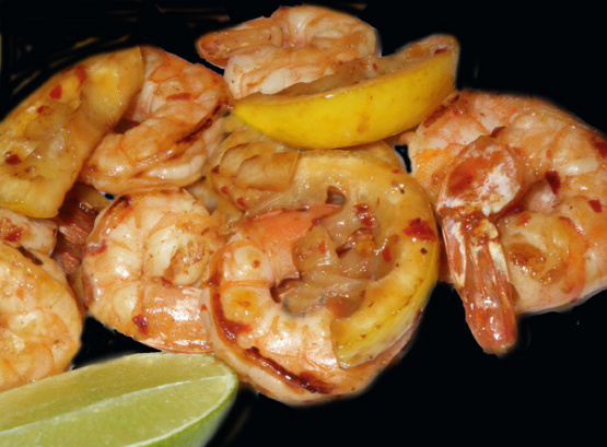 Gegrilde koningsgarnalen met citroen, knoflook en chili