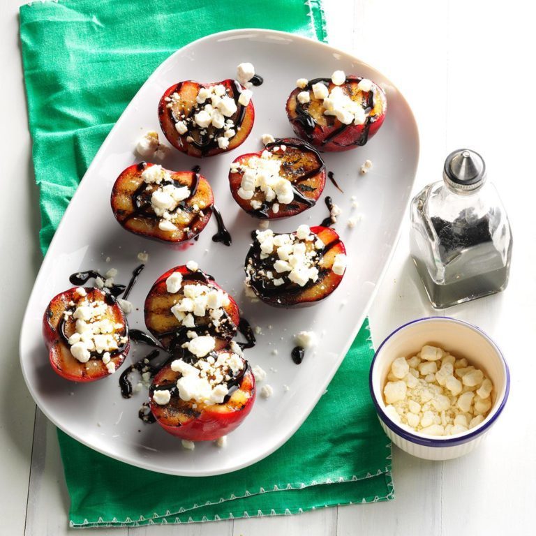 Leg een echte statement uit tijdens uw zomer-etentje met deze eenvoudige en elegante traktatie. Rijpe pruimen worden gegrild, vervolgens aangekleed met een balsamico-reductie en besprenkeld met pittige geitenkaas. -Ariana Abelow, Holliston, Massachusetts