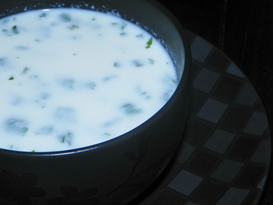 Roer de kippenbouillon (zelfgemaakte indien mogelijk) room, zout, peper en suiker.