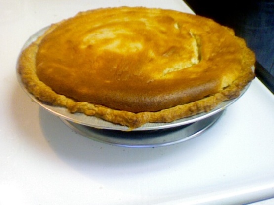 Klop het eiwit stijf en vouw het in de custard. Giet het in de schaal en bak in een voorverwarmde oven op 375 ° F en bak nog ongeveer 20 minuten, tot de vulling is gezet. Glijd de hete taart op een bord, bestrooi met gemalen kaneel slagroom en serveer warm of koud om koud te serveren.