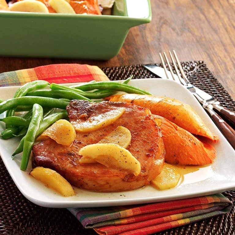 Appel en zoete aardappel smaken combineren zo mooi met varkensvlees. Mijn familie geniet van eenvoudige diners zoals deze.-Helen Sanders, Fort Myers, Florida
