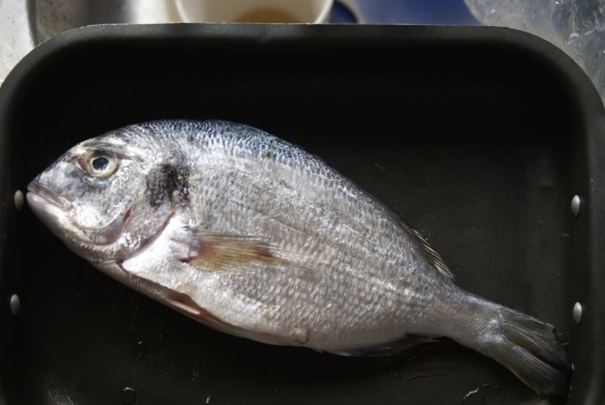 Dit is een eenvoudige en gemakkelijke methode om hele vis- of vissecties te bereiden, maar geen vissteaks of filets. In mijn voorbeeld gebruik ik zeebrasem (awrat), maar het kan ook worden gebruikt voor vrijwel elke vergelijkbare vis, inclusief dorado, zeebaars enz. Eén zeebrasem is min of meer genoeg voor één persoon. Als u meer dan één vis kookt, wikkel ze dan afzonderlijk.