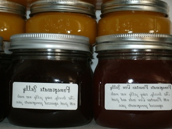 Dit is een leuke gelei die de smaak van granaatappelsap en frisdrank van de bergdauw combineert. Dit is een heerlijk smakende cocktail, maar nog meer verrassend en lekker als gelei. Ik heb dit recept gemaakt omdat ik nog een beetje granaatappelsap over had van mijn granaatappellegering en bergdauw omdat ik het op de site vermelde bergdauwrecept wilde proberen.