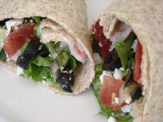 Maak en deel dit Griekse Veggie Wrap (South Beach Diet Phase 2) recept uit.