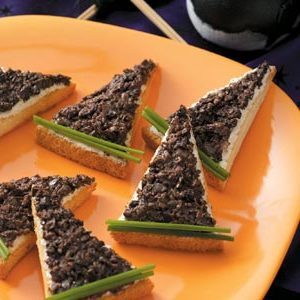 Voeg iets hartigs toe aan je volgende spookachtige buffet met de hoeden van deze schattige heksen. De Kalamata-olijven zijn de perfecte aanvulling op de geitenkaas. -Taste of Home Test Kitchen