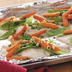Ideaal voor iedereen die calorieën meetelt, dit handige pakket met foliepakketten is zo lekker en zou niet veel sneller of gemakkelijker kunnen zijn, zegt Shirley Gever van Toms River, New Jersey. "Ik adviseer het te serveren met gebakken aardappelen," merkt ze op.