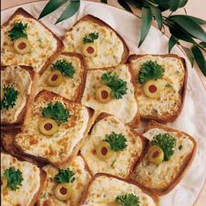 Meng in een kleine kom de eerste vier ingrediënten. Spreid over brood; plaats op een bakplaat