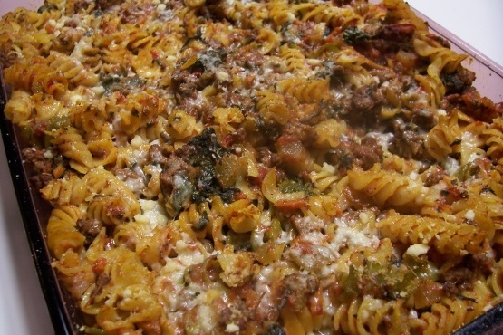 Dit maakt twee stevige pasta-ovenschalen uit de Italiaanse stijl met rundvlees en spinazie voor heel weinig geld en maakt goed gebruik van de ingrediënten die je misschien in je huis hebt liggen. Dit komt uit de receptcollectie van mijn tante, een beetje bijgewerkt naar mijn smaak. Ze had dit oorspronkelijk geknipt van een artikel in Family Circle in 1973. Ik wilde zowel het verhaal achter dit recept als het recept zelf vertellen. Op een gegeven moment had een moeder van zes kinderen op dit moment besloten om gasten uit te nodigen voor het avondeten op een Zondag. Er waren op zondag geen winkels open, dus ze kon geen ingrediënten kopen en kreeg alleen te maken met het gebruik van haar magere huishoudelijke nietjes en vertrouwde op haar Italiaanse familieachtergrond voor inspiratie. Dit is wat ze heeft gemaakt. Dit maakt twee grote stoofschotels, een die je nu kunt eten, en een die je kunt invriezen en later kunt opwarmen als je geen stel gasten hebt. Ik denk dat als je geen spinazie hebt, je een andere veggie kunt vervangen als geroosterde rode paprika's, gebakken champignons ... r Wat je ook bij de hand hebt, is het punt hier. Ook, wanneer je dit maakt ... zou je kunnen zeggen "dit kan wat meer kaas gebruiken" ... ga je gang en gebruik extra kaas als je wilt, wat smelten tijdens de laatste 5-10 minuten bakken.