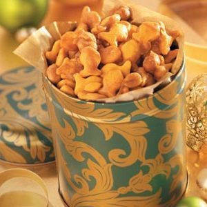 Hier is een favoriete snack van mij die ik verslavend vind. Ik geef ze graag als cadeau tijdens de vakantie in geschenkverpakte, overdekte koffiebussen met een plastic zak aan de binnenkant. Betty B.Claycomb, Alverton, Pennsylvania