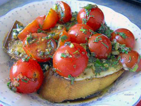 Kersentomaten op provolon knoflookbrood