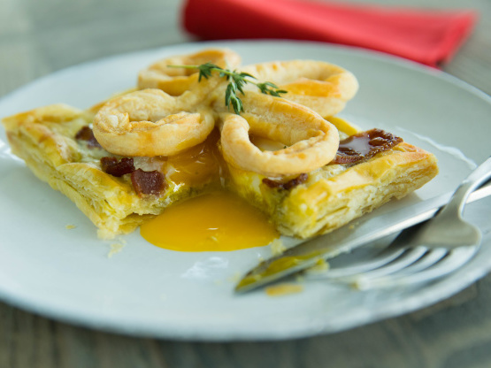 Voeg vervolgens verschillende stukjes spek en de bovenkant toe met een rauw ei