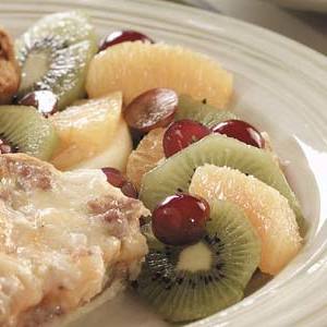 30 minFruitsalade Receptenkaas, citroensap, citroensap, slagroom, suiker, perziken, bosbessen, aardbeien, druiven, pecannoten,koele en romige fruitsalade -
