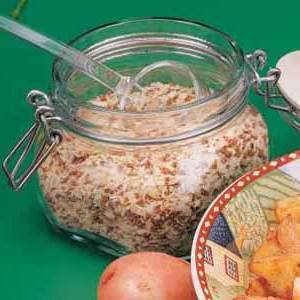Je kunt soep bereiden, dips maken en zelfs vleeswaren met deze handige mix van June Mullins of Livonia, Missouri. "Mijn kleinkinderen vinden het echt heerlijk als een laagje op ovengeroosterde aardappelen," zegt ze. "Het is een goedkoop alternatief voor de enveloppen je komt in de winkel. "