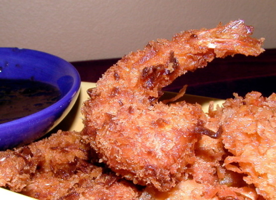Ik heb dit recept in 9/06 aangenomen. Ik zou het 3 - 4 sterren geven. Ik had graag meer kokosnoot. Ik hou van panko, maar de volgende keer zou ik de kokosnoot verhogen en de panko verminderen. Ik kon de cayennepeper niet proeven bij allemaal, dus ik zou het verdubbelen. Ik vond ook dat 375 een beetje warm was, verlaagd naar 350 en had meer geluk. Ik gebruikte een pruimensaus om te dippen. Over het algemeen gewoon oke. De volgende tekst is de originele beschrijving van het recept .. ..... Deze smakelijke garnalen zullen de toon zetten voor elke serieuze manier van eten. Snoepjes en gemakkelijk te hanteren, ze bieden een pittige mix van kruiden en zoete kokosnoten. Voor ultiem genot, serveer ze met een frisse, koele mousserende wijn. Fruity Riesling, Viognier of Sauvignon Blanc is ook aan te raden.VARIATIE: Spicy Dipping Sauce, om een beetje meer warmte aan deze garnalen toe te voegen, serveer naast een pittige dipsaus: Klop 60 theelepel cayennepeper in 1/4 liter mayonaise.