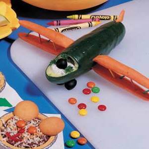 Fris uit de CT-testkeuken komt een vleugje fantasie die zeker grijnzen van jongeren zal winnen - en laat ze hun groenten eten zonder gedoe. Sterker nog, om het echt handig te maken, vraag je elk van je kleintjes om te helpen bij het samenstellen van een vliegtuig van komkommer, wortels en olijven (zorg ervoor dat een volwassene het snijden natuurlijk doet).