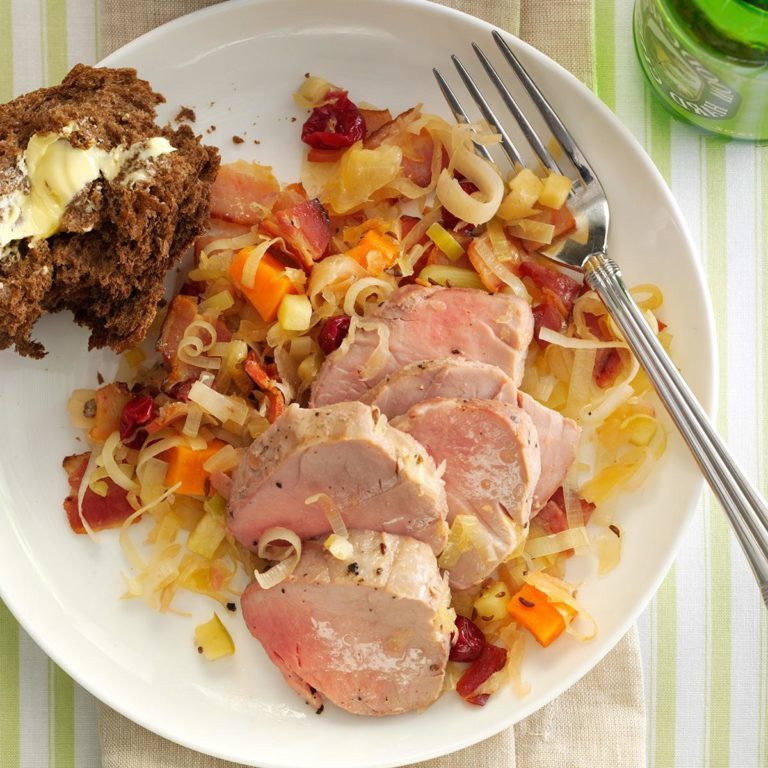 Langzaam gegaarde varkenshaas met gevette kraut