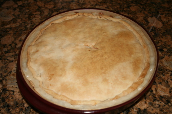 Meng in een grote kom alle ingrediënten en meng goed. Giet in de taartplaat en dek af met de resterende korst.