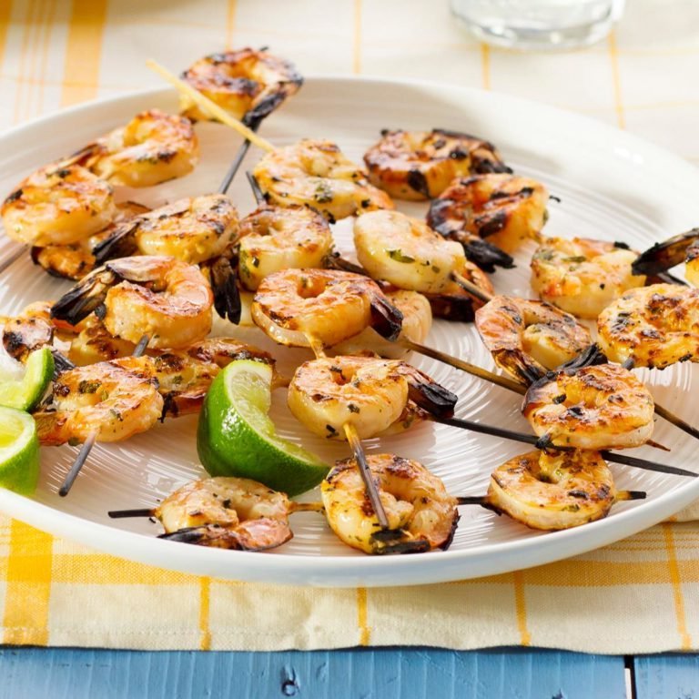 30 minGegrilde zeevruchtenkoriander, Limoen, Limoen, Jalapeno peper, olie-, teentjes knoflook, zout, komijn, peper, garnalen per, Limoen,eenvoudige bbq koriander limoengarnalen
