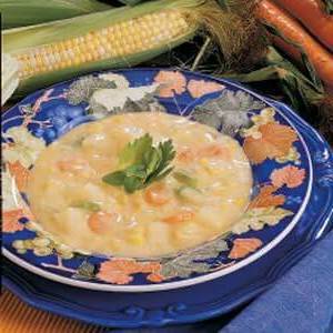"Vroeger kookte ik voor een tearoom, en deze rijke, zonnig gekleurde chowder was een favoriet van de klant", meldt Isabel Kublik uit Saskatoon, Saskatchewan. "Het is een fluitje van een cent om in de magnetron te maken, want er is geen verbranding."
