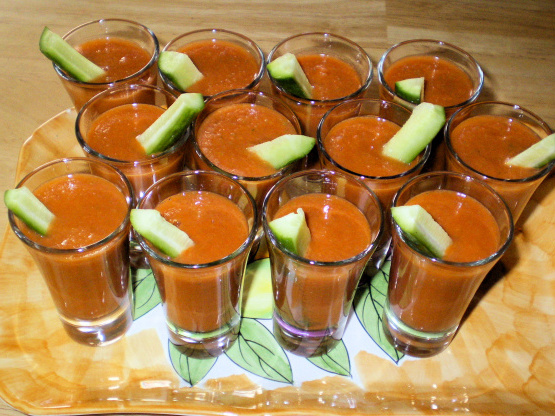 Maak en deel dit Mini Chilled Gazpacho, Tapas-recept uit.