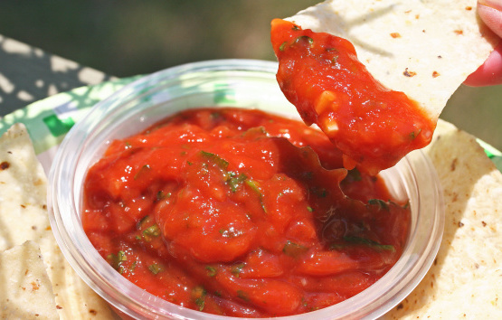Dit is al zo lang als ik me kan herinneren favoriet in onze familie. Ik gebruik het op taco's, chimichangas, met chips, tamales, enchiladas, burrito's, roerei, taco-salades, Mexicaanse rijst, huevos rancheros, gebakken aardappelen ... je begrijpt het. Dit recept is een POGING om de kruiden goed te krijgen, omdat mam de ingrediënten niet meet. (Ook niet.); ) U kunt de kruiden naar uw smaak aanpassen.Let op: de salsa moet minstens 2-3 uur in de koelkast blijven zitten om de smaken te laten versmelten.